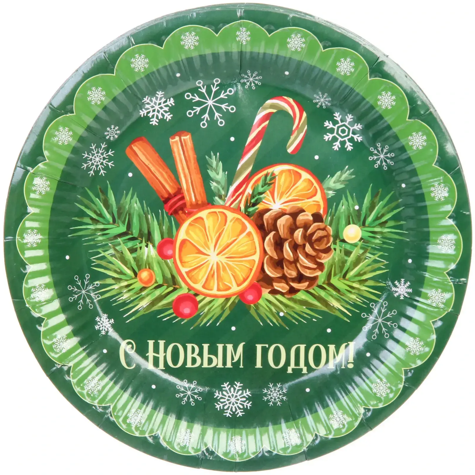 Создайте идеальную атмосферу для новогоднего застолья с яркими одноразовыми тарелками «С Новым Годом - Зимняя фантазия». Зеленый фон и праздничный декор поднимут настроение вашим гостям.