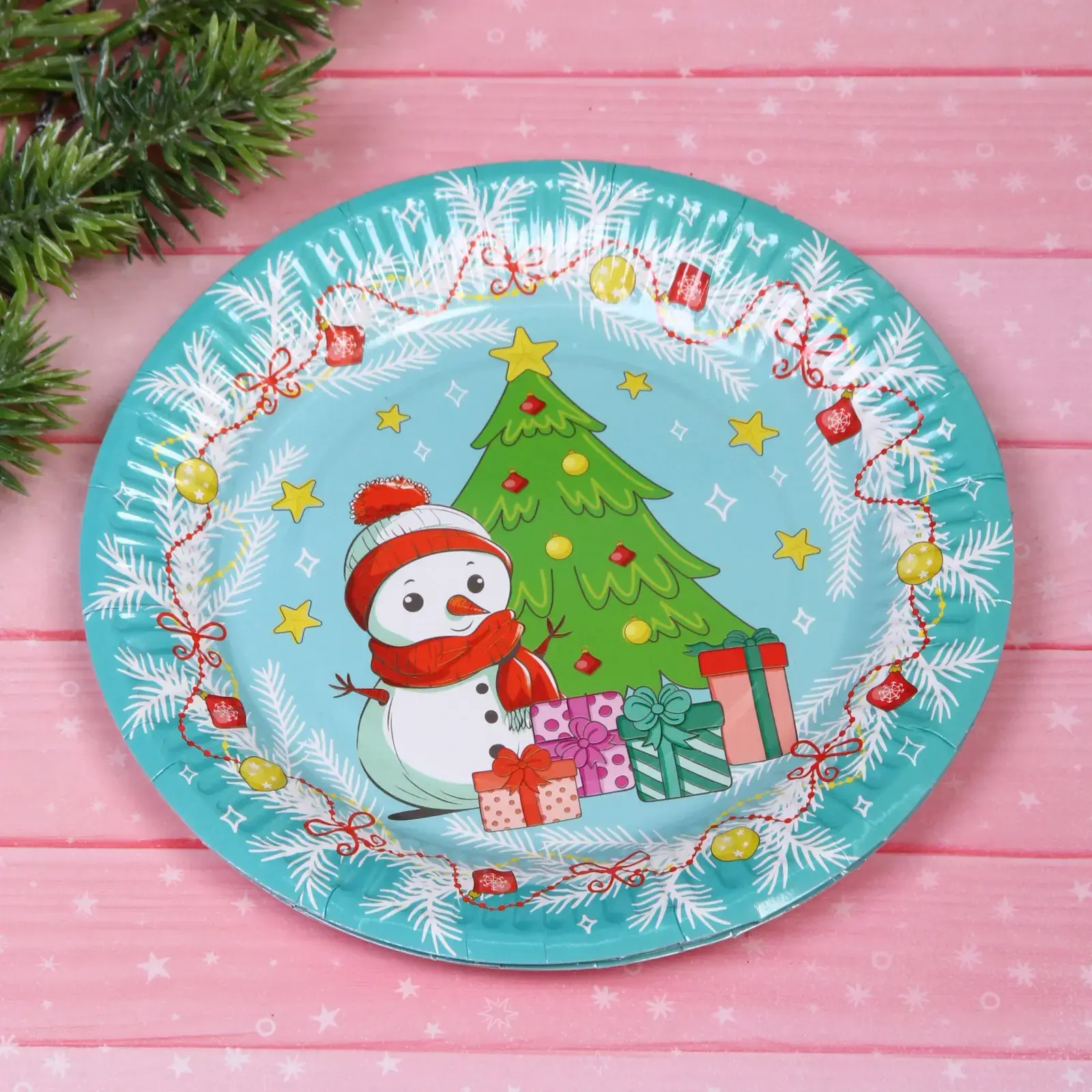 Праздничная бумажная тарелка для новогоднего стола
