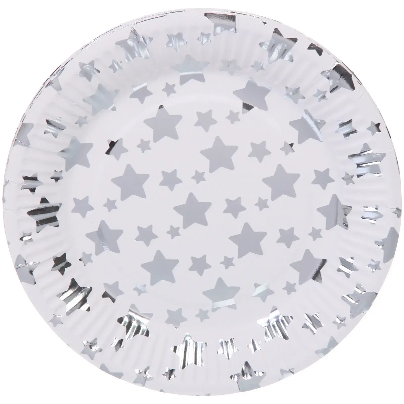Создайте атмосферу уюта и стиля на вашем мероприятии с помощью наших бумажных тарелок диаметром 18 см. Эти тарелки, украшенные серебристыми звездами, идеально подойдут для сервировки блюд на любом празднике, будь то день рождения, свадьба или корпоратив. Они не только красивы, но и удобны в использовании, что позволит вам сосредоточиться на главном — наслаждении моментом.