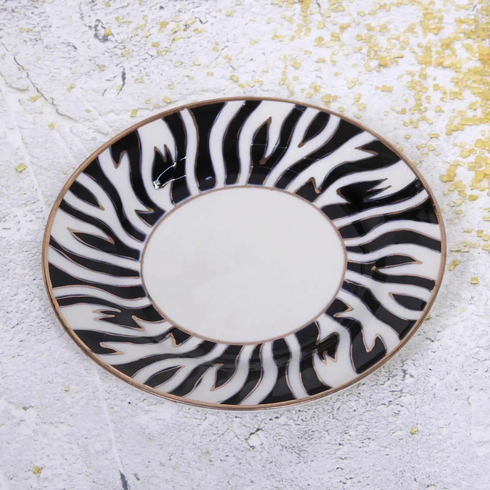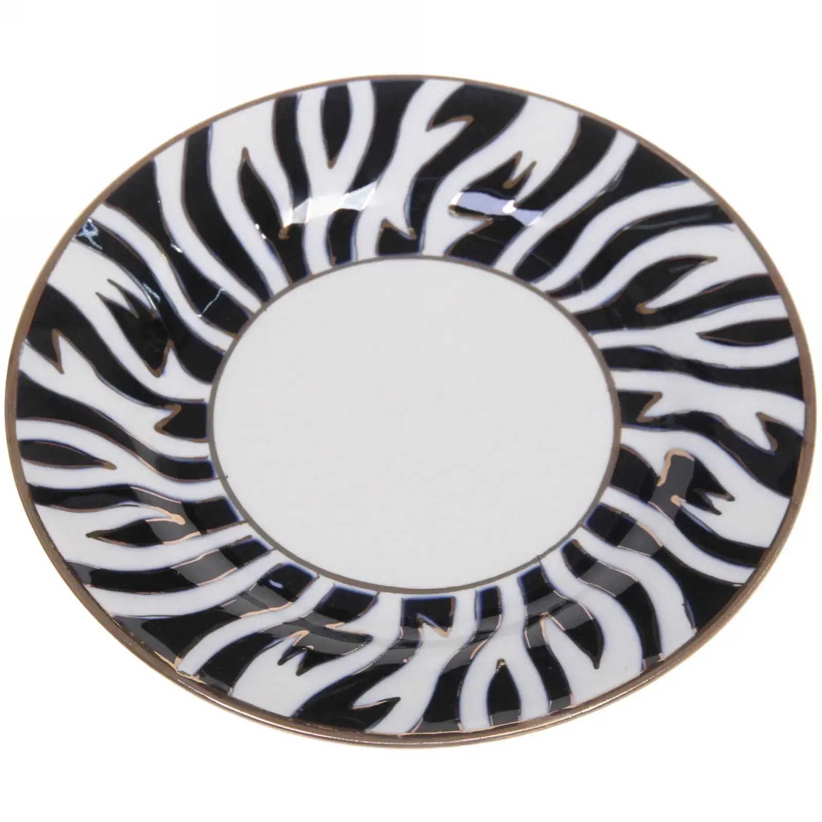 Десертная тарелка из высококачественного фарфора с контрастным зебровым узором и позолотой станет украшением любого стола. Идеальный баланс стиля и функциональности для тех, кто ценит эстетику в деталях.