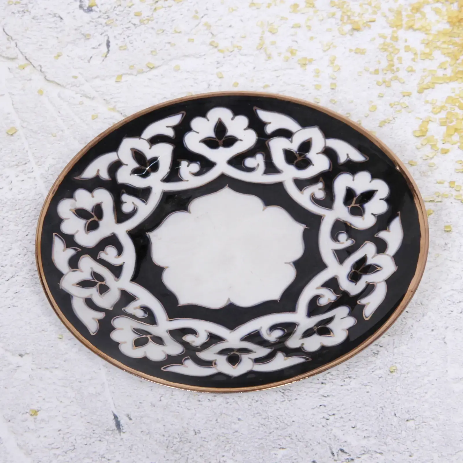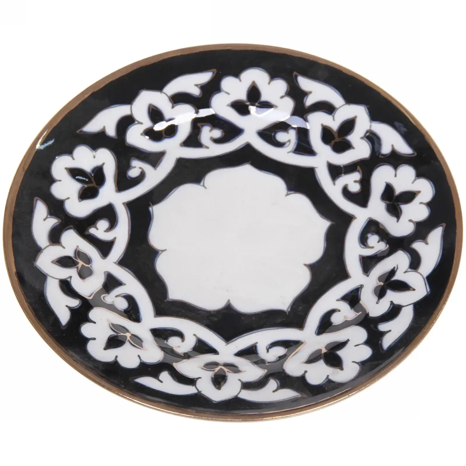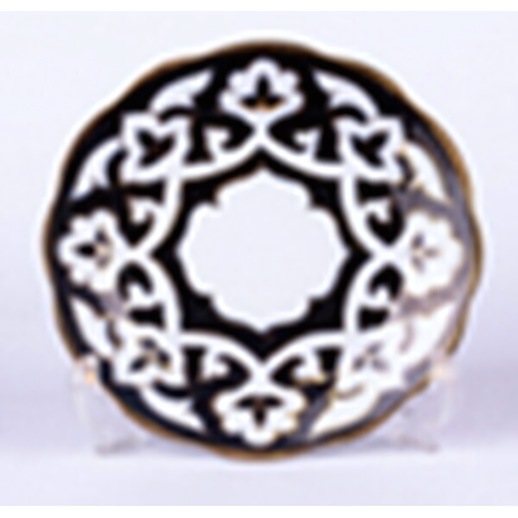 Тарелка десертная «Пахта» 17см, фарфор, черная с золотой окантовкой, цветочный узор