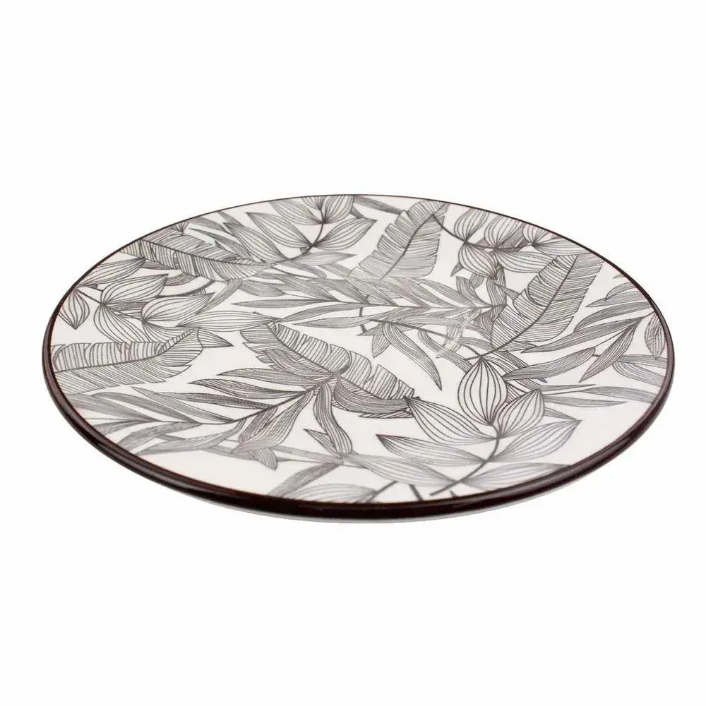Тарелка десертная 20см Branch, фарфор, черно-белый узор листьев, для сервировки