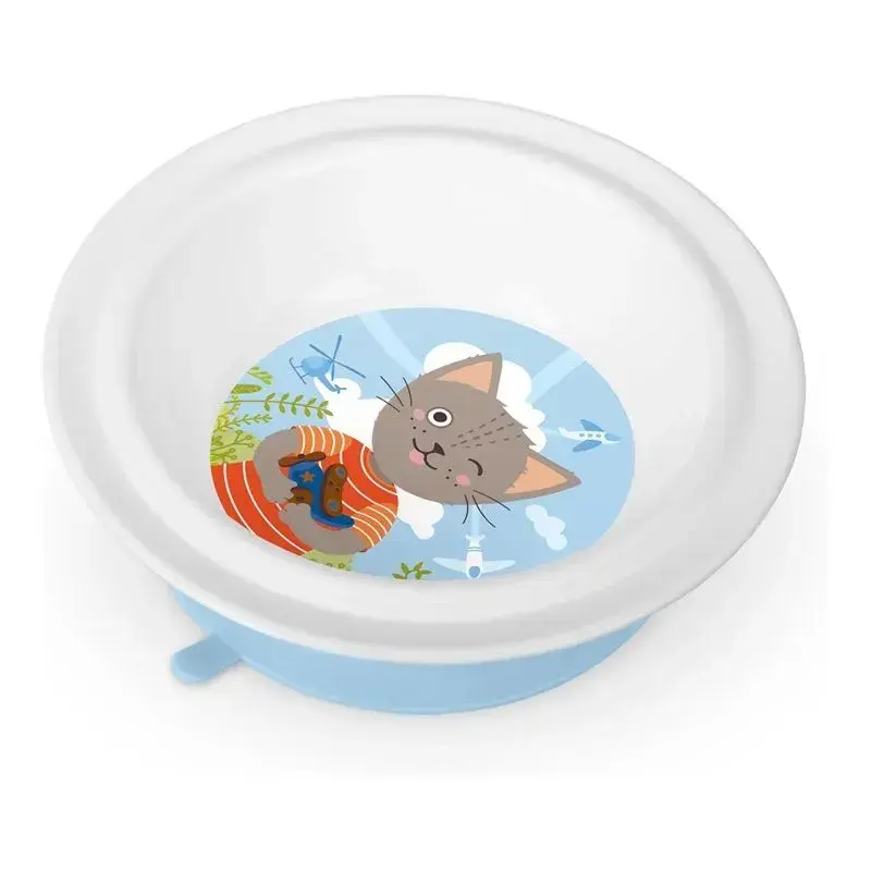 Изделие изготовлено из высококачественного безопасного материала, устойчивого к механическим повреждениям. Голубой декор с забавным котёнком создаёт позитивную атмосферу во время приёма пищи.