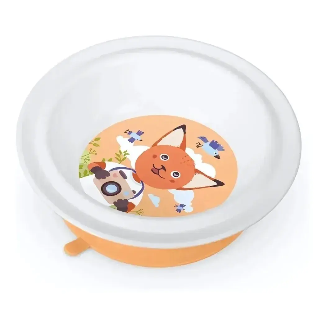 Тарелка детская глубокая на присосе, белая с оранжевым декором, диаметр 18см