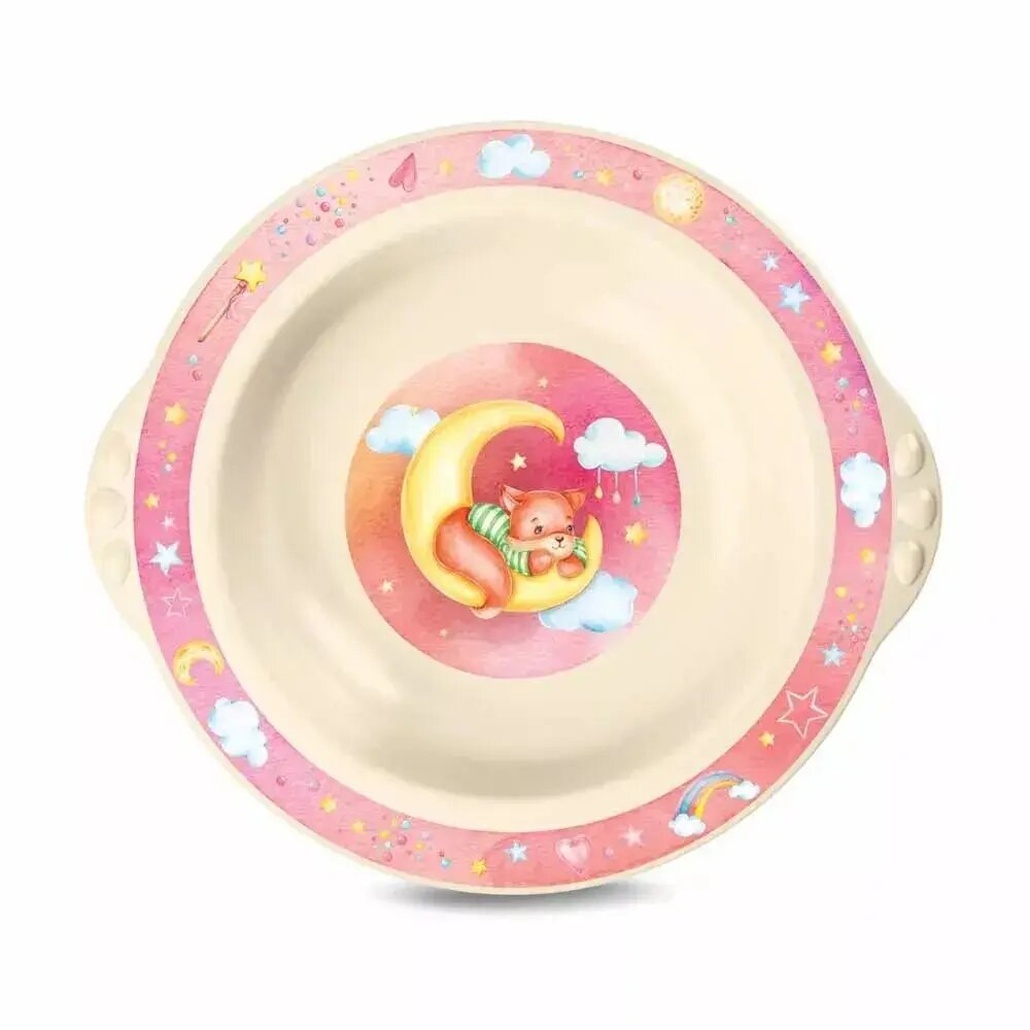 Тарелка детская глубокая с розовым декором, цвет бежевый, материал пластик