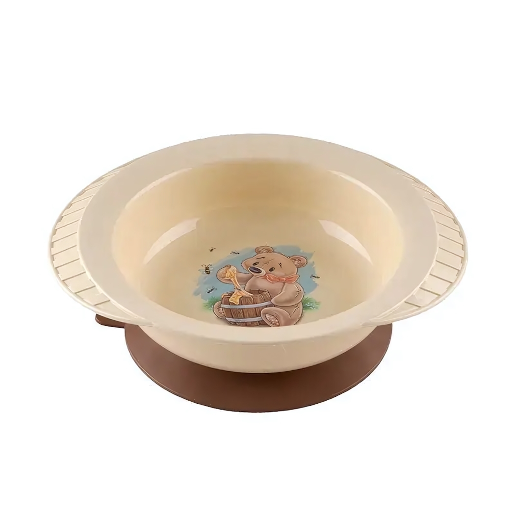 Тарелка детская на присоске с рисунком медвежонка, пластик, бежевая, устойчивая
