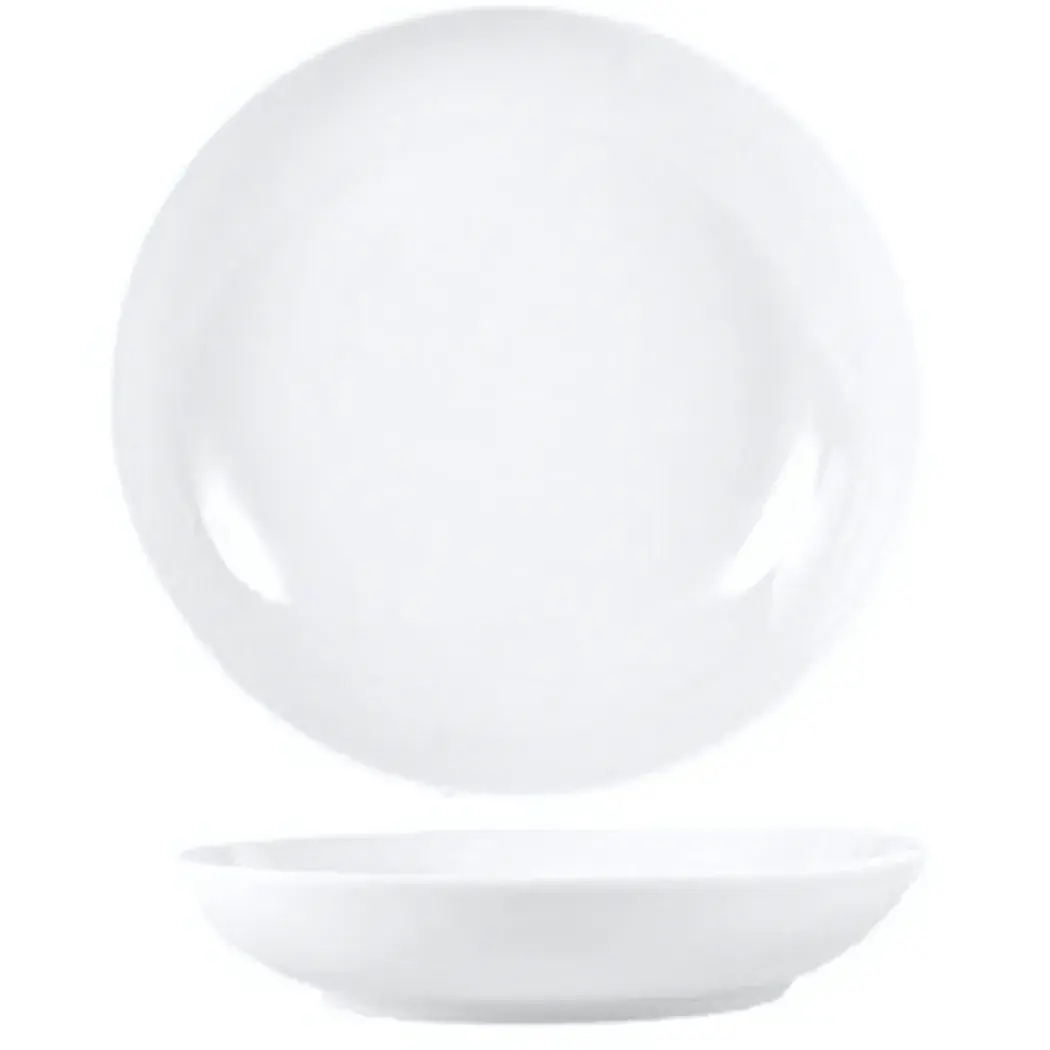 Глубокая фарфоровая тарелка серии 'Универсал' станет незаменимым помощником на вашей кухне. Благодаря классическому белому цвету и гладкой поверхности, она подходит как для ежедневного использования, так и для торжественных случаев.