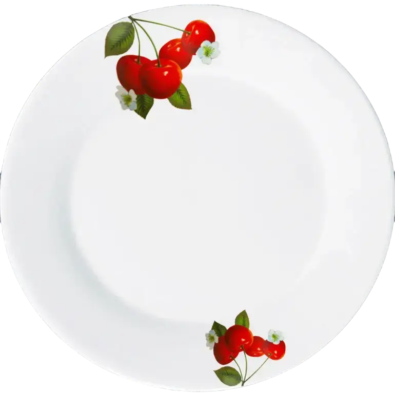Тарелка обеденная фарфоровая 20см «Вишня», дизайн с цветами, для сервировки и повседневного использования