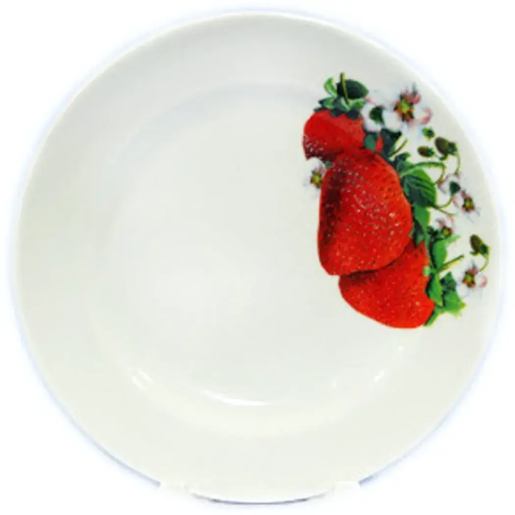 Эта изысканная тарелка станет настоящим украшением вашего стола. С ярким изображением клубники и зелени, она добавит свежести и уюта в каждую трапезу. Изготовленная из качественного фарфора, тарелка обладает высокой прочностью и долговечностью, что делает её идеальным выбором для ежедневного использования.