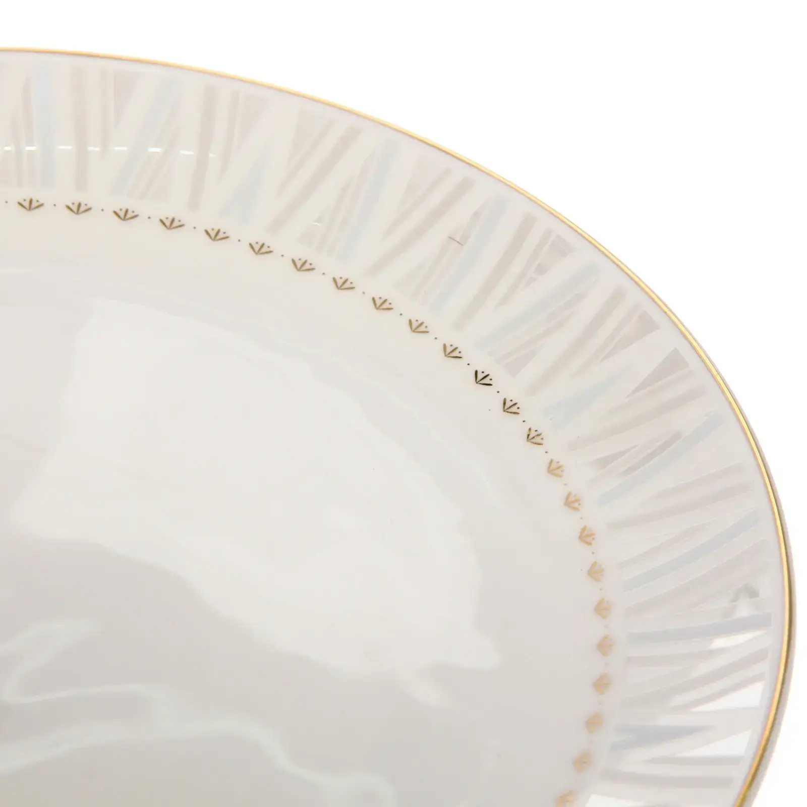 Фарфор премиум-класса гарантирует долговечность и сохранение первоначального внешнего вида даже при регулярном использовании. Золотой ободок и геометрический узор создают неповторимый стиль, который украсит как повседневную, так и праздничную сервировку.