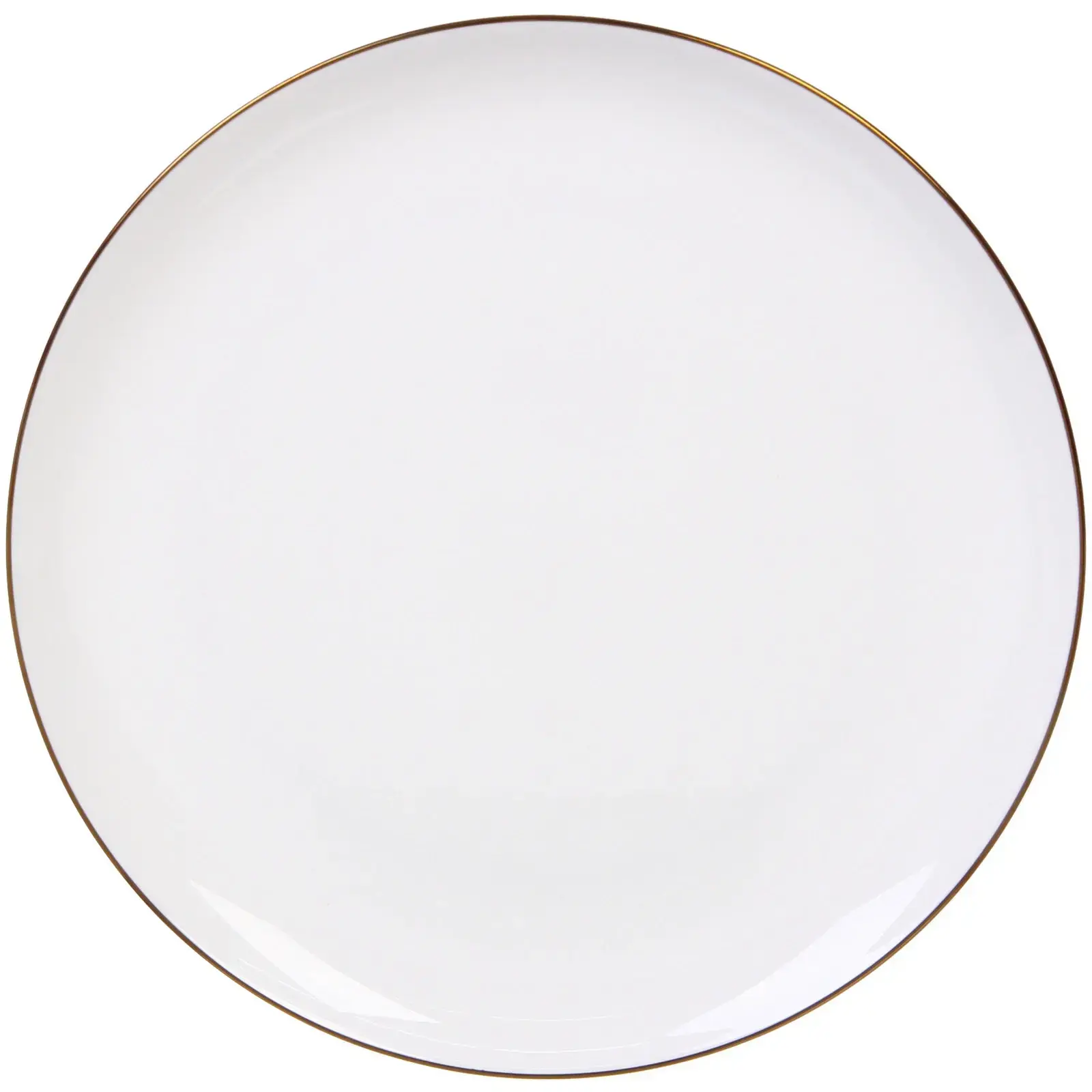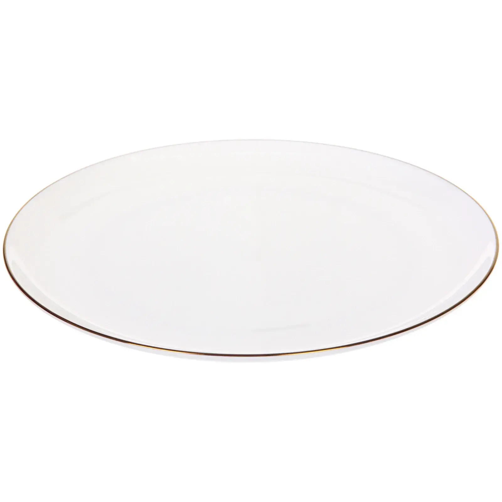 Тарелка выполнена из качественного фарфора, что гарантирует её долговечность и надежность. Золотистая кайма придаёт ей изысканный вид, а белый цвет делает её универсальной для любого стиля сервировки. Размер 26 см позволяет использовать тарелку для различных блюд, а её гладкая поверхность подчеркивает красоту подаваемых на ней угощений.