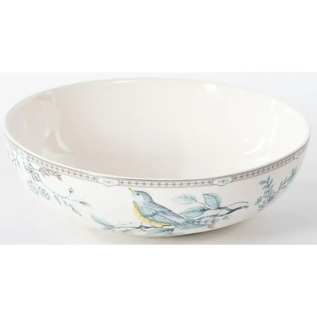 Керамическая глубокая тарелка с изысканным декором — идеальное сочетание практичности и художественного оформления. Нежный растительный орнамент с птицами превратит обычный приём пищи в эстетическое удовольствие.