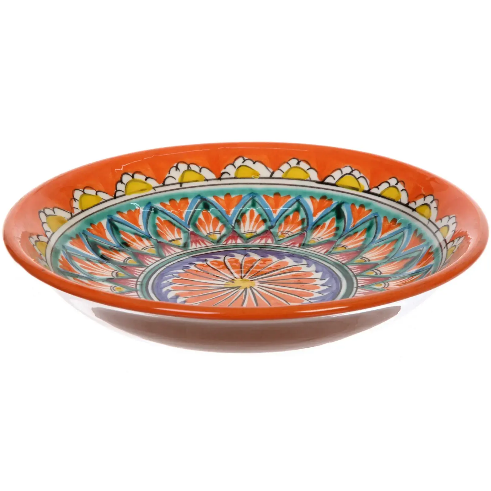Ручная работа с многовековыми традициями Востока — глубокая тарелка станет украшением вашего стола и кухонного интерьера. Сочетание насыщенного оранжевого фона с многослойными узорами создает эффект драгоценного изделия, которое преобразит подачу любых блюд.