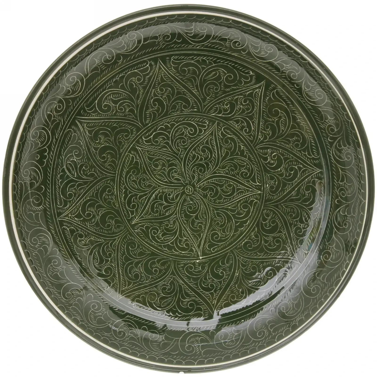 Глубокая тарелка «Риштанская керамика», 19х4 см, зеленая, цветочный узор, керамика