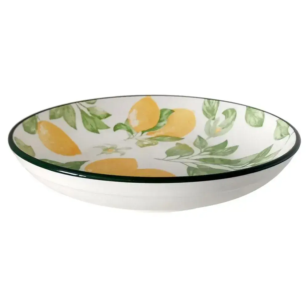 Глубокая керамическая тарелка с сочным цитрусовым принтом создаст летнее настроение даже в холодный день. Идеально подходит для подачи салатов, пасты, горячих блюд и фруктовых десертов.