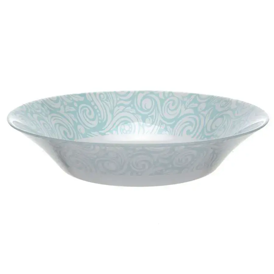 Эта глубокая тарелка диаметром 22 см станет настоящим украшением вашего стола. Ее светло-голубой цвет с изящным узором в виде завитков добавит нотку элегантности и стиля в любое застолье. Изготовленная из качественного стекла, тарелка не только красива, но и практична в использовании.
