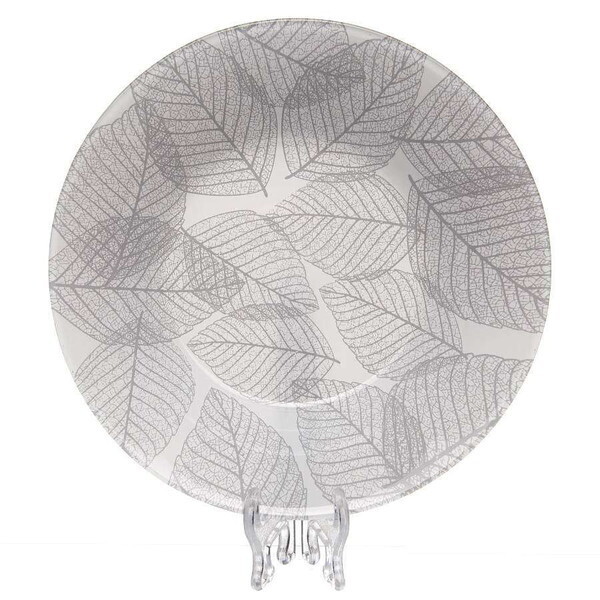 Размер тарелки составляет 22 см в диаметре, что делает её универсальной для использования в различных ситуациях. Материал — стекло, что обеспечивает прочность и долговечность. Тарелка имеет светлый цвет с серым узором, что делает её не только функциональной, но и эстетически привлекательной.