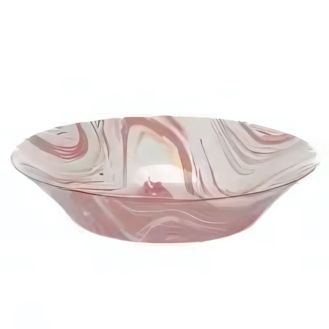 Глубокая тарелка из прочного стекла сочетает функциональность и эстетику. Мраморный эффект в нежно-розовых тонах создаёт изысканный акцент на обеденном столе.
