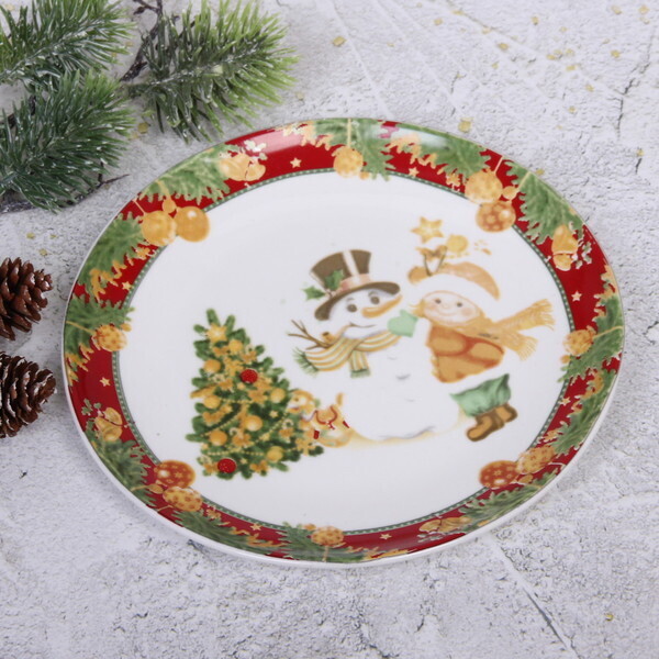 Почему стоит выбрать именно эту тарелку? Во-первых, она выполнена из качественной керамики, что обеспечивает долговечность и надежность. Во-вторых, ее яркий новогодний дизайн с изображением снеговика и мальчика, а также рождественской елки, добавляет радости и веселья в любое застолье. Тарелка легко моется и устойчива к повреждениям, что делает ее практичным выбором для повседневного использования.