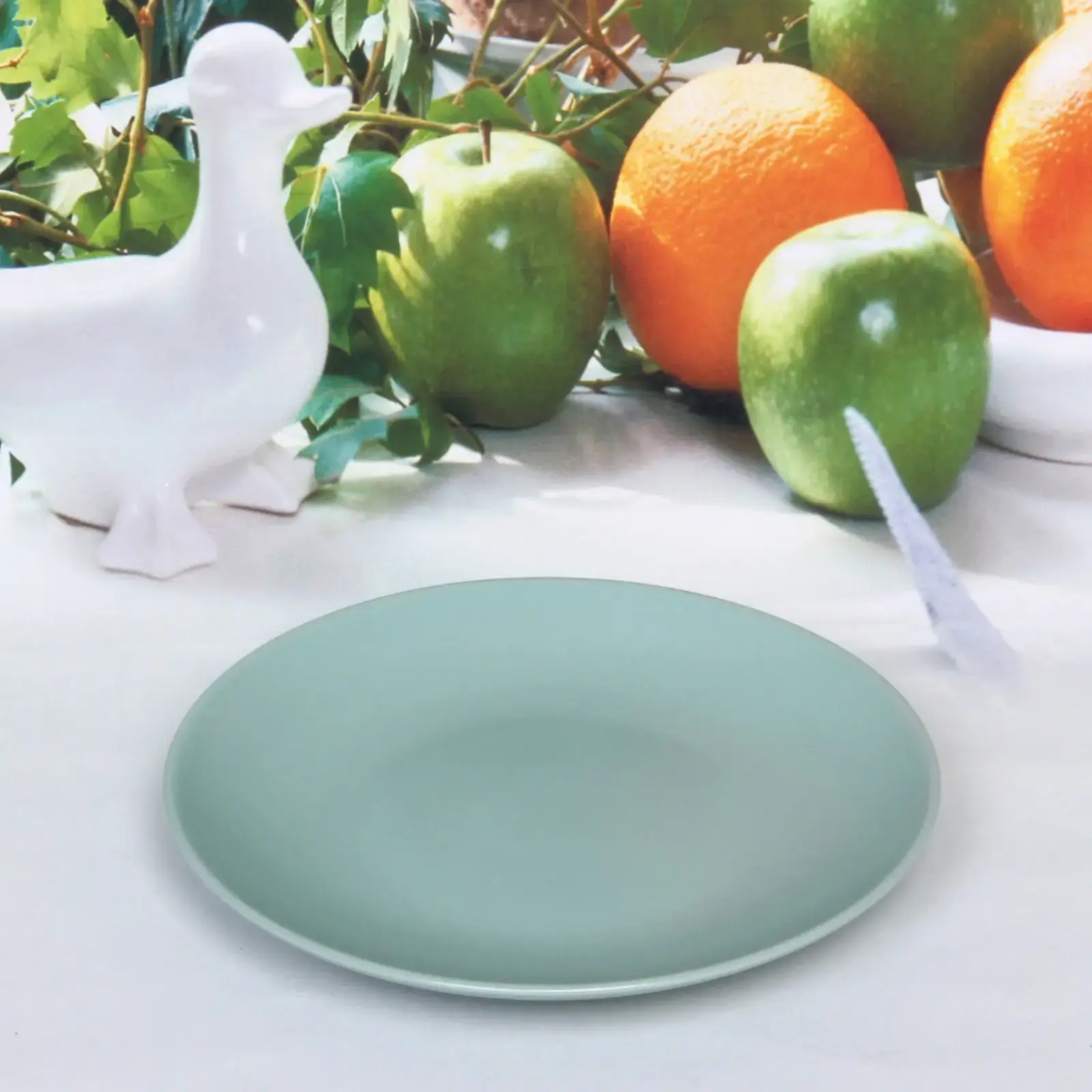 Нежный мятный оттенок гармонично сочетается с посудой пастельных тонов и натуральными текстурами. Тарелка одинаково эффектно смотрится как в повседневной сервировке, так и на праздничном столе. Её можно использовать как самостоятельный элемент декора или основу для композиций с живыми цветами и декоративными элементами.