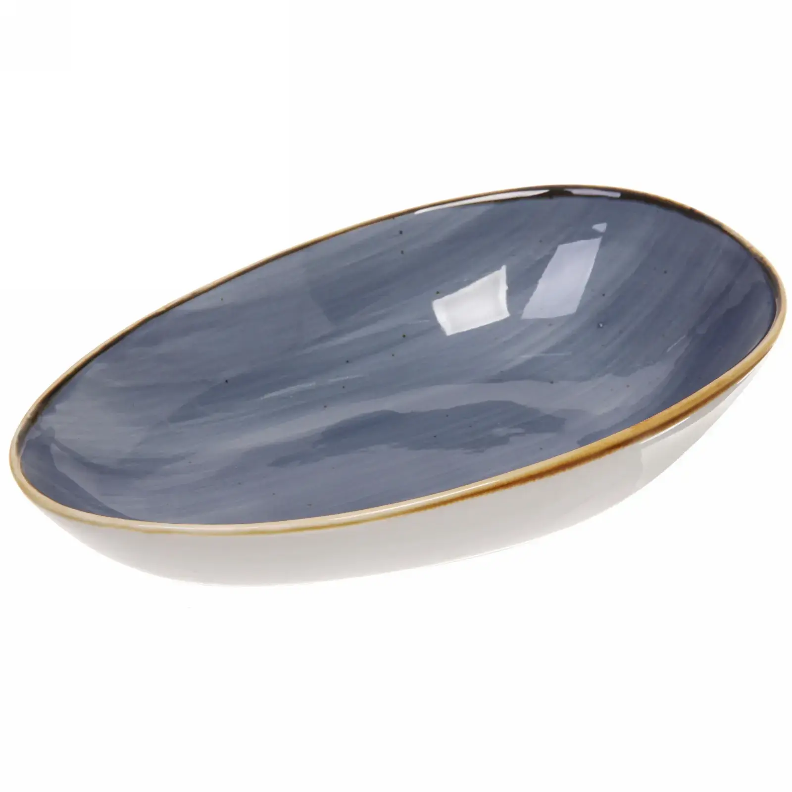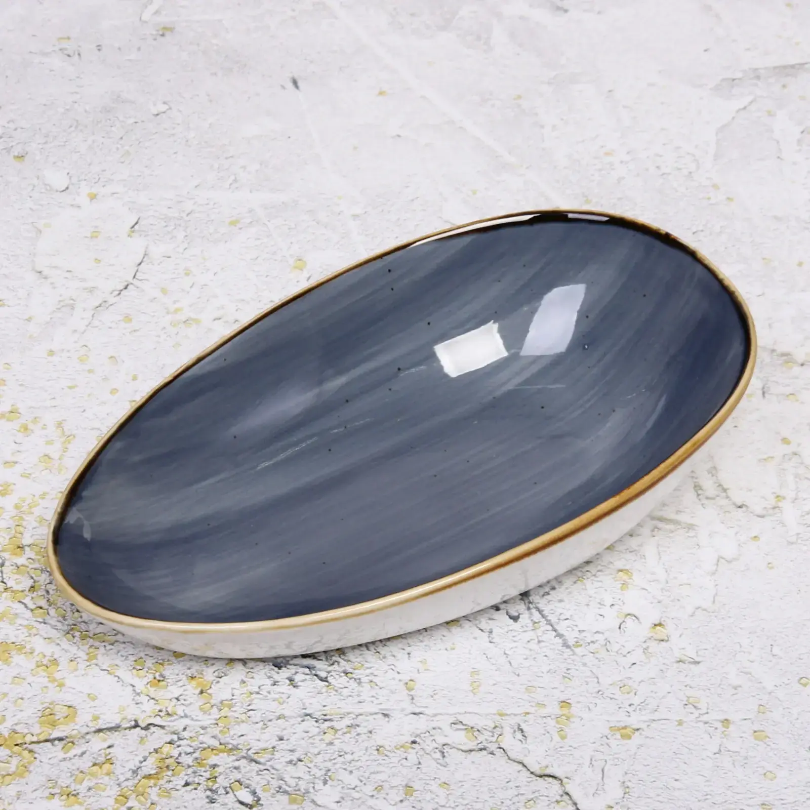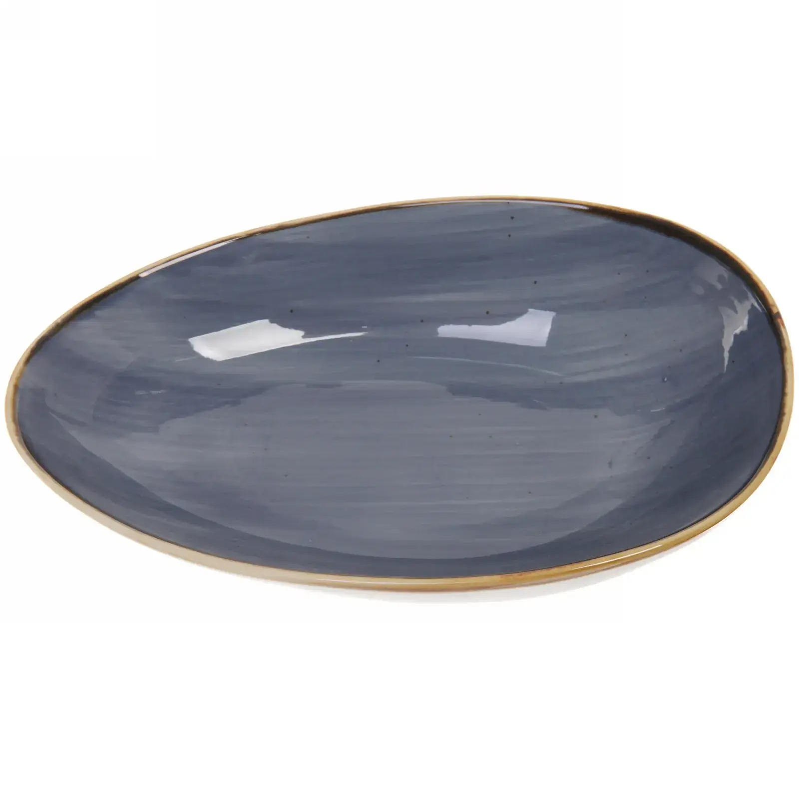 Тарелка керамическая «Corsica blue», овальная, 26×16×6 см, темно-синяя с золотистой окантовкой, для сервировки