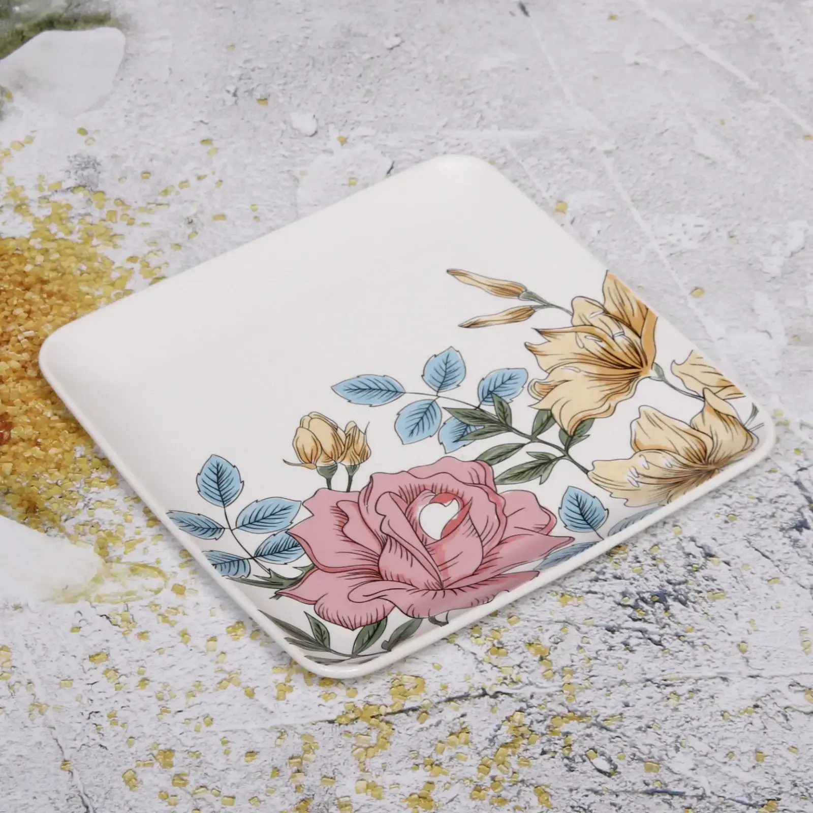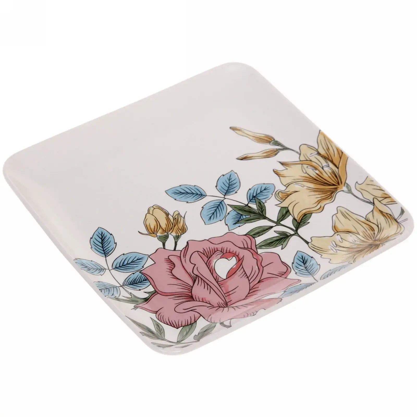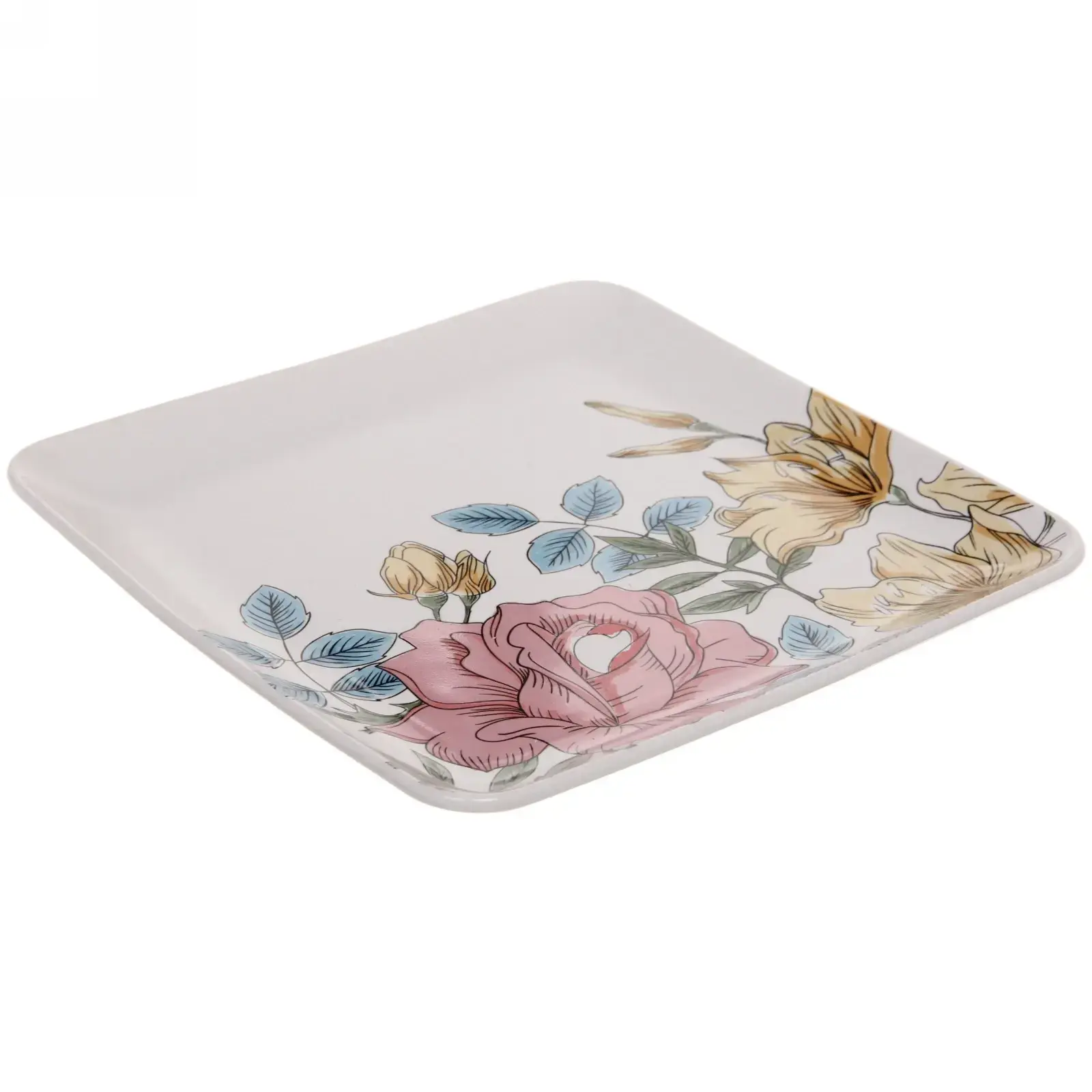 Тарелка керамическая «Flower fantasy» 20х20х2 см, квадратная, цветочный рисунок, для сервировки