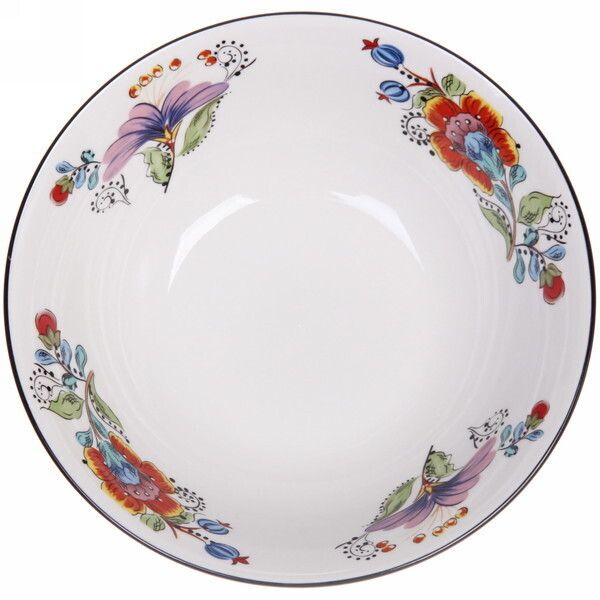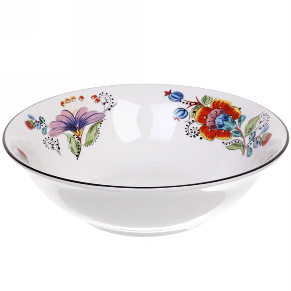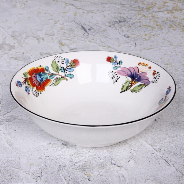 Тарелка идеально подходит для подачи супов, салатов и других блюд. Её глубокая форма позволяет удобно накладывать порции, а яркий цветочный узор добавляет эстетическую привлекательность. Подходит для ежедневного использования, а также для особых случаев, когда вы хотите произвести впечатление на гостей.