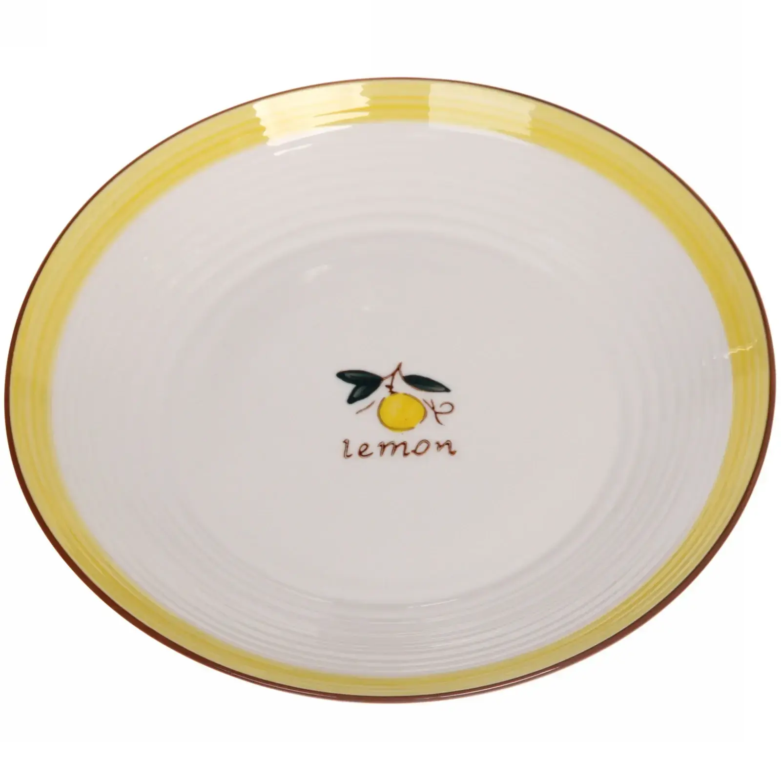 Эта керамическая тарелка «Lemon classic» станет идеальным дополнением вашей кухонной посуды. С её помощью вы сможете не только красиво сервировать блюда, но и добавить яркий акцент в интерьер. Белый цвет с желтой каймой и изображение лимона создают атмосферу свежести и уюта, что делает её отличным выбором для подачи как повседневных, так и праздничных блюд.