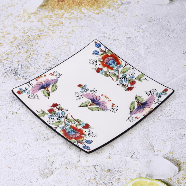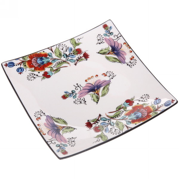 Изготовленная из высококачественной керамики, тарелка сохраняет тепло блюд и подходит для использования в микроволновой печи. Стойкие краски не выцветают после многократного мытья в посудомоечной машине. Чёрная контурная окантовка подчёркивает геометрию изделия, добавляя современный акцент традиционному цветочному мотиву.