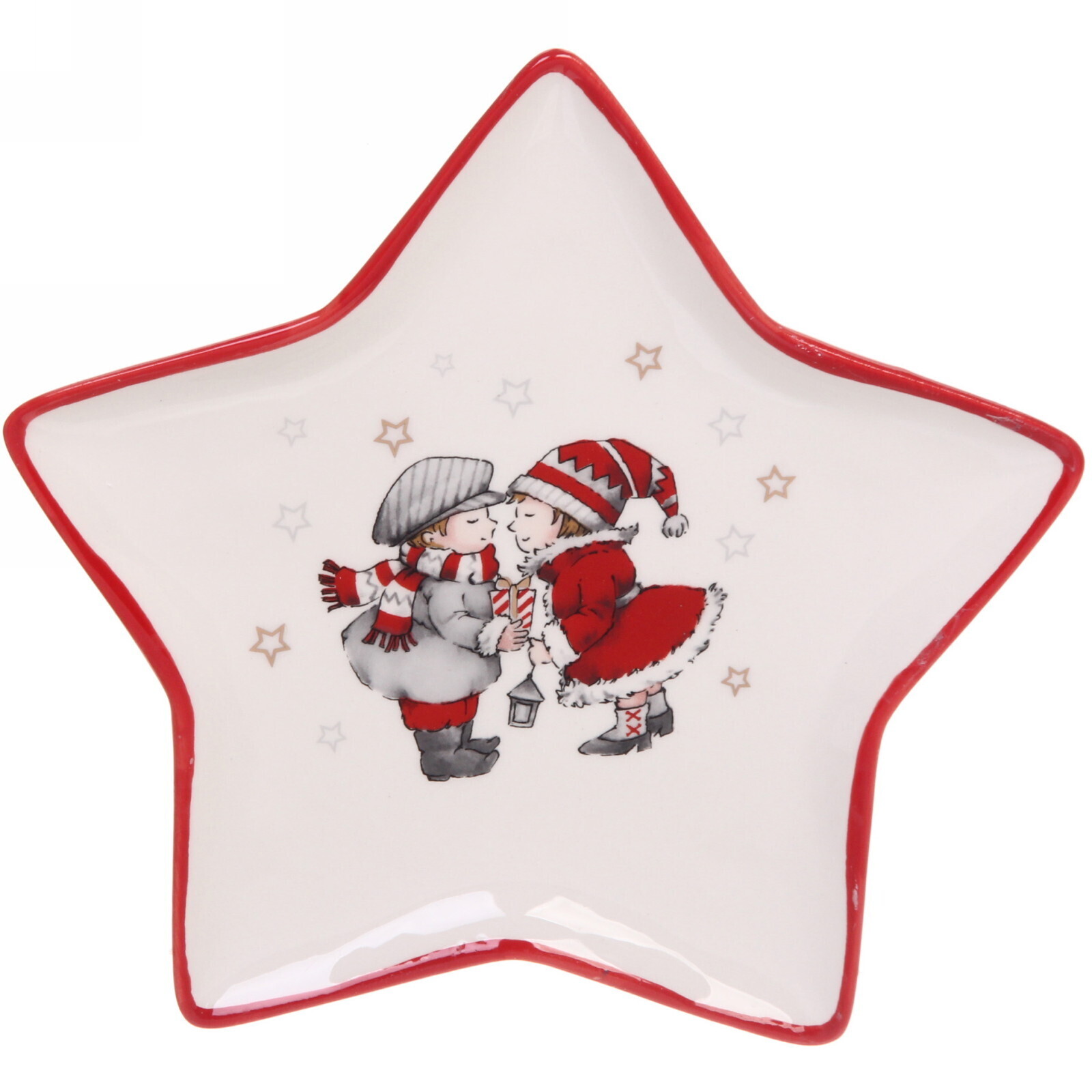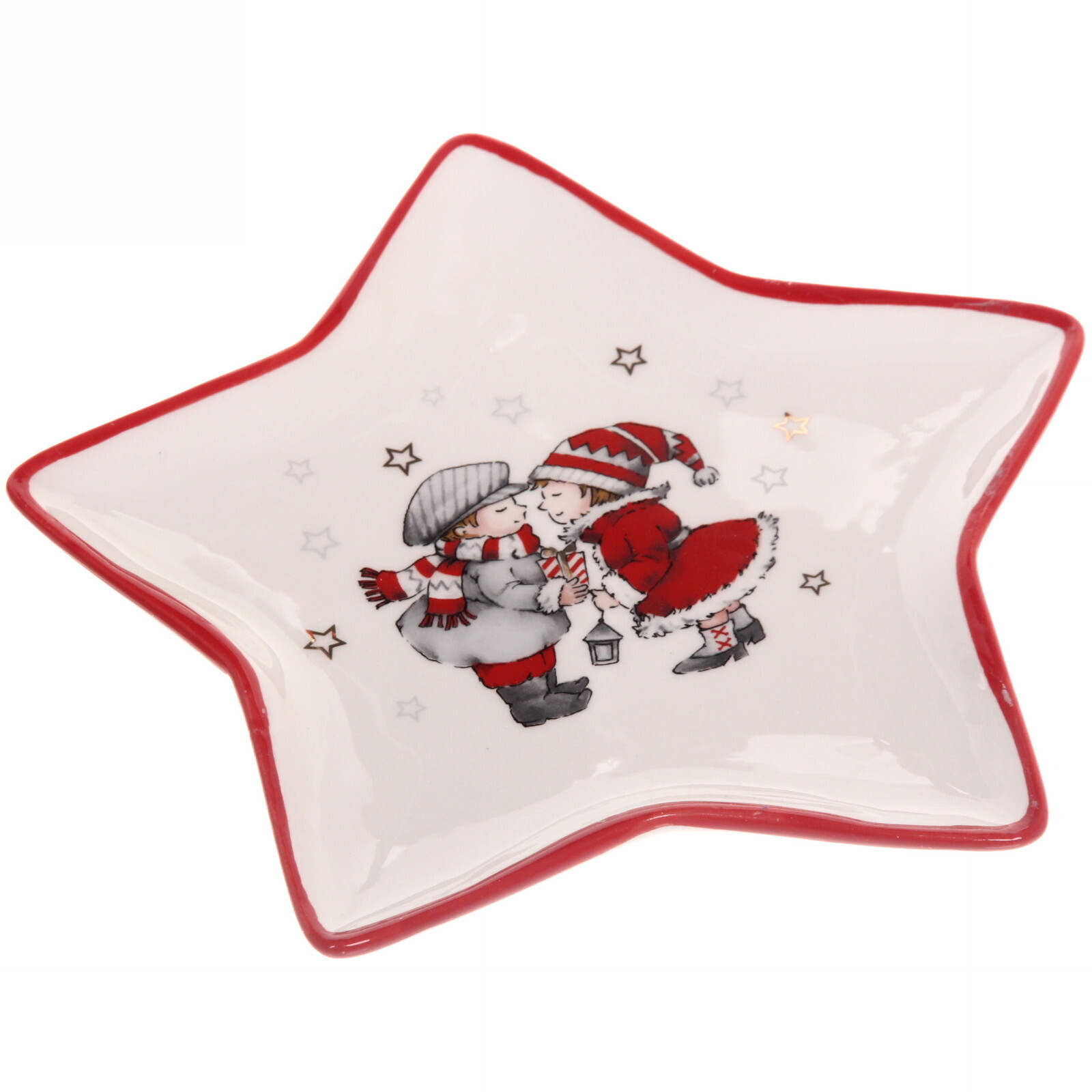 Тарелка выполнена из качественной керамики, что обеспечивает ее долговечность и легкость в уходе. Гладкая поверхность легко очищается, а яркий дизайн с изображением детей в зимней одежде и золотистыми звездами добавляет праздничного настроения. Размеры 20,5х19,7 см делают ее удобной для сервировки различных блюд.