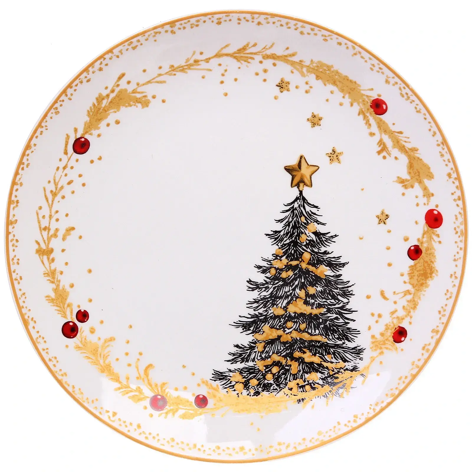 Тарелка керамическая 'Новогодний шик' 25см, праздничный дизайн золото/красный