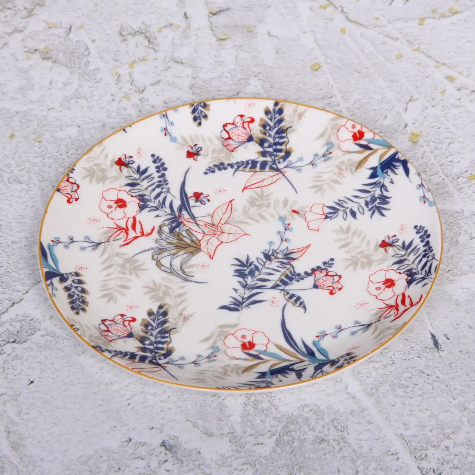 Керамическая тарелка «Paradise» сочетает в себе изысканный дизайн и практичность. Цветочный орнамент в сочетании с золотой окантовкой создаёт атмосферу уюта и праздника, превращая обычный приём пищи в эстетическое удовольствие.