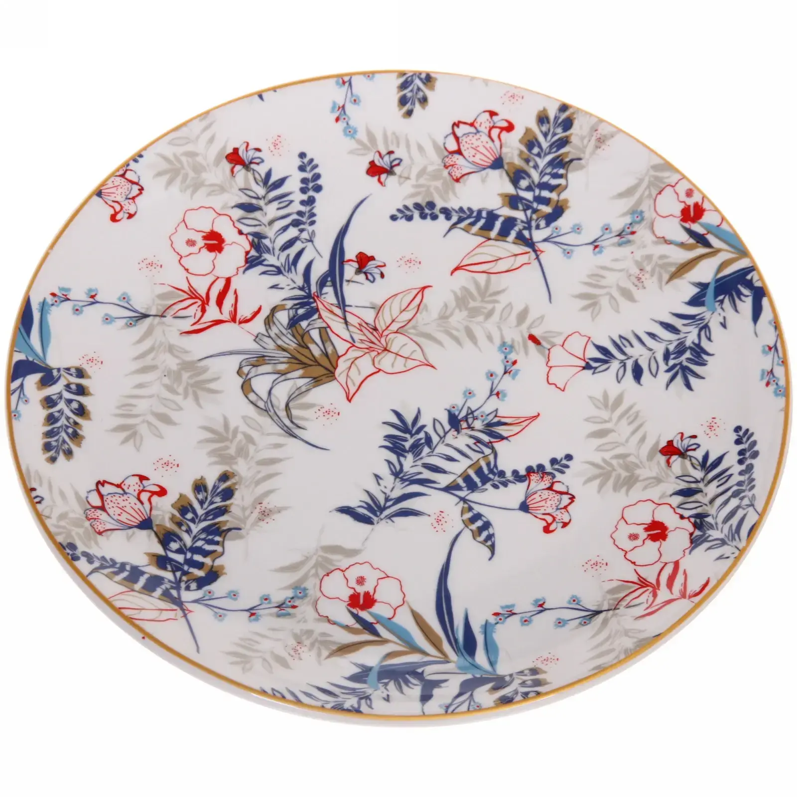 Эта керамическая тарелка «Paradise» диаметром 22 см станет настоящим украшением вашего стола. С её помощью вы сможете создать атмосферу уюта и стиля во время семейных обедов или праздничных ужинов. Белый фон с ярким цветочным узором в красных, синих и серых тонах, а также изысканное золотое обрамление делают её не только функциональной, но и эстетически привлекательной.