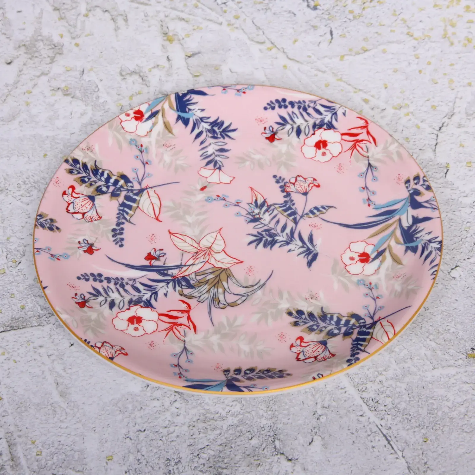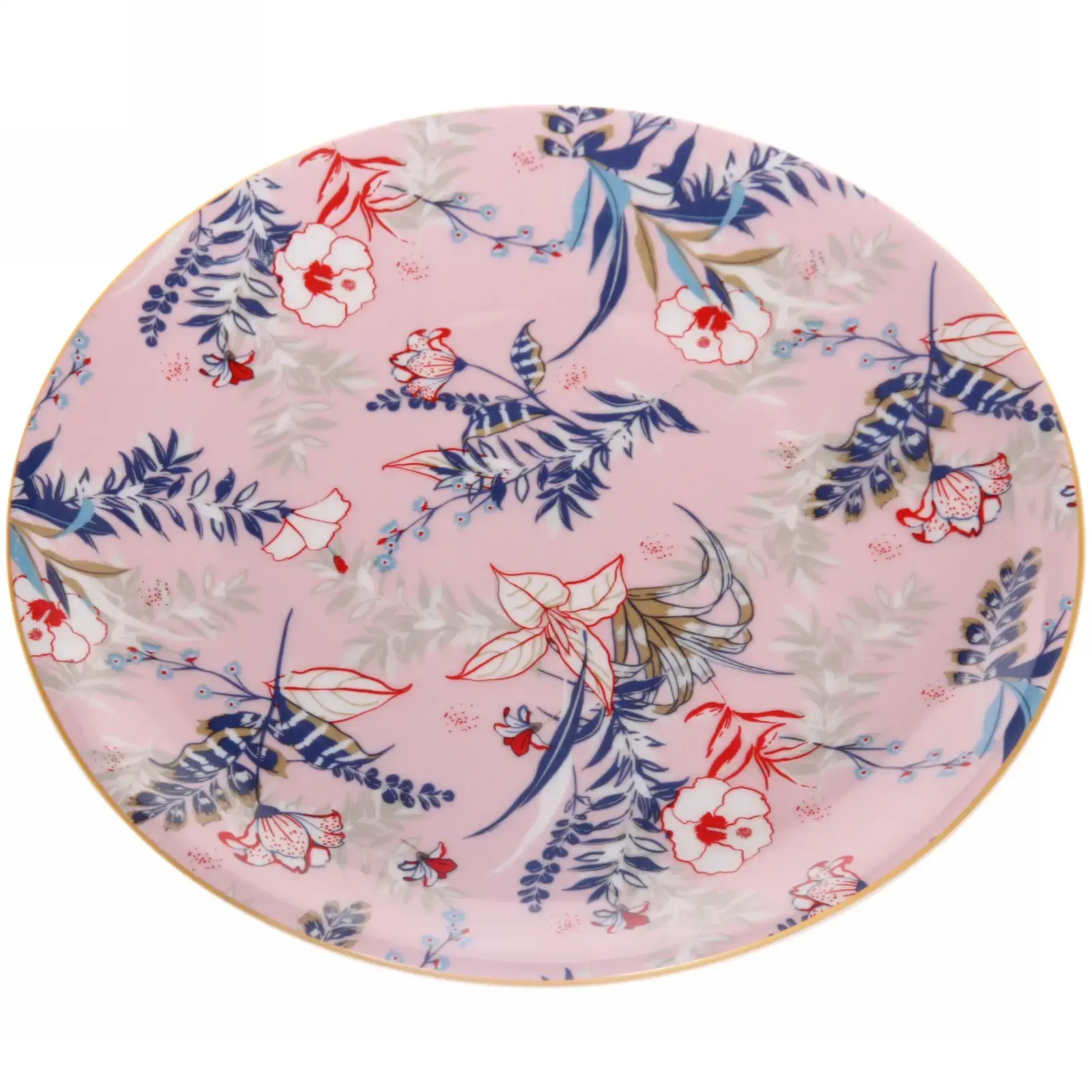 Эта керамическая тарелка «Paradise» станет не только практичным элементом сервировки, но и ярким акцентом вашего стола. С её помощью вы сможете создать атмосферу уюта и стиля во время семейных обедов или праздничных ужинов. Розовый цвет с цветочным узором и золотым ободком придаёт тарелке изысканный вид, который впечатлит ваших гостей.