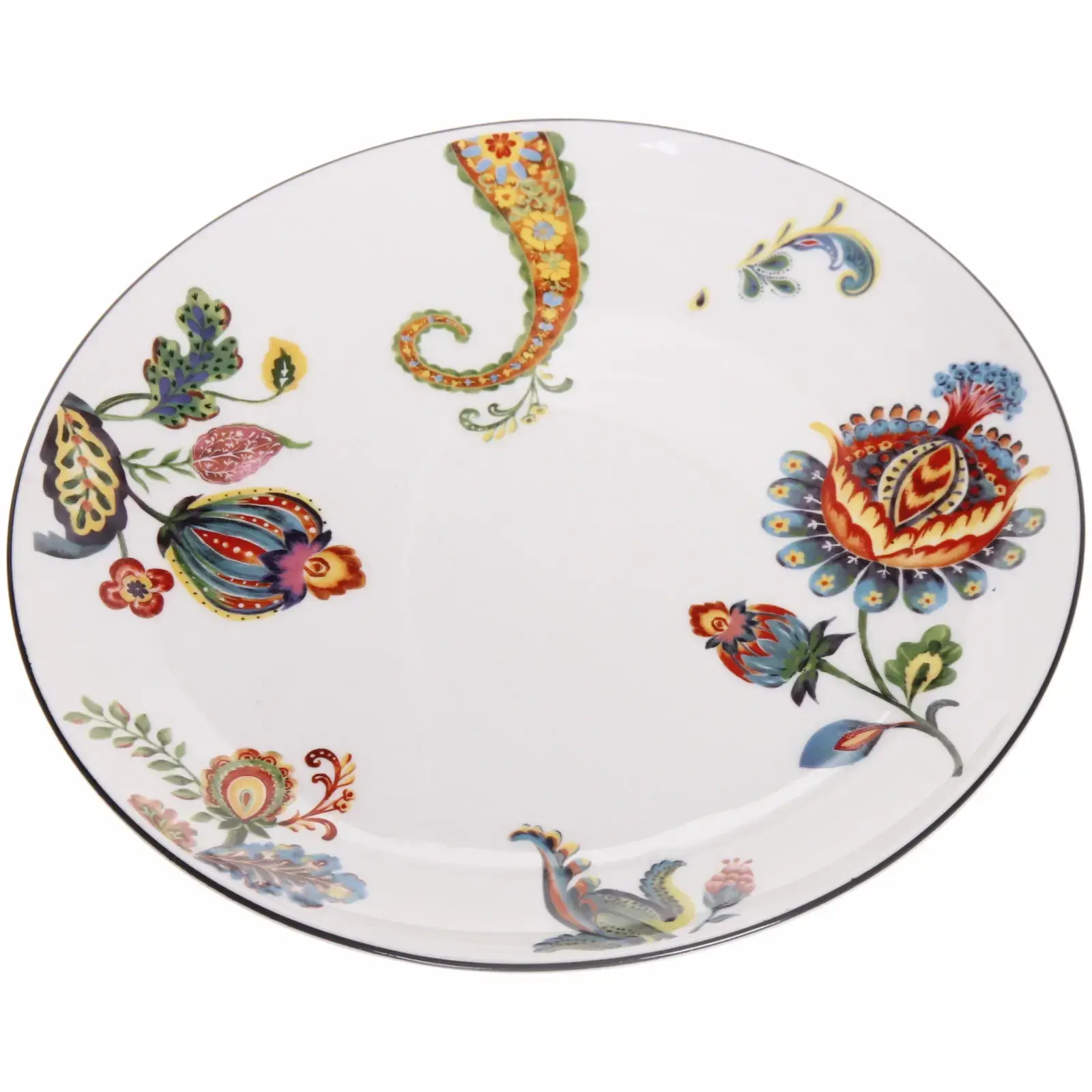 Тарелка керамическая декоративная «Paradise flowers» 25 см, цветочный узор, черная окантовка