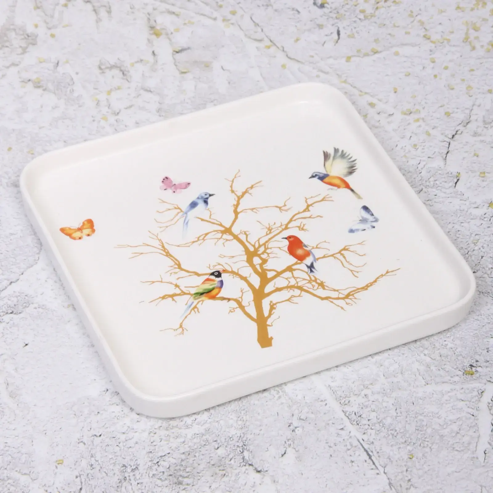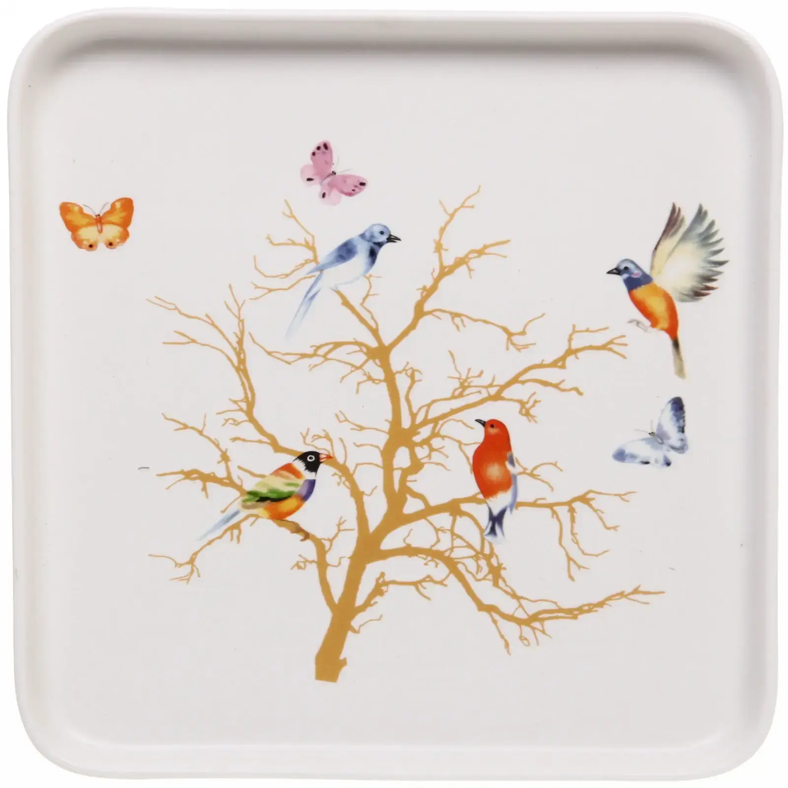 Эта керамическая тарелка «Райский сад» станет идеальным дополнением вашей кухонной посуды. С её помощью вы сможете не только сервировать блюда, но и украсить стол, добавив нотку изысканности и стиля. Белый цвет и уникальный рисунок с золотыми ветвями дерева, а также яркие изображения птиц и бабочек создают атмосферу уюта и гармонии.