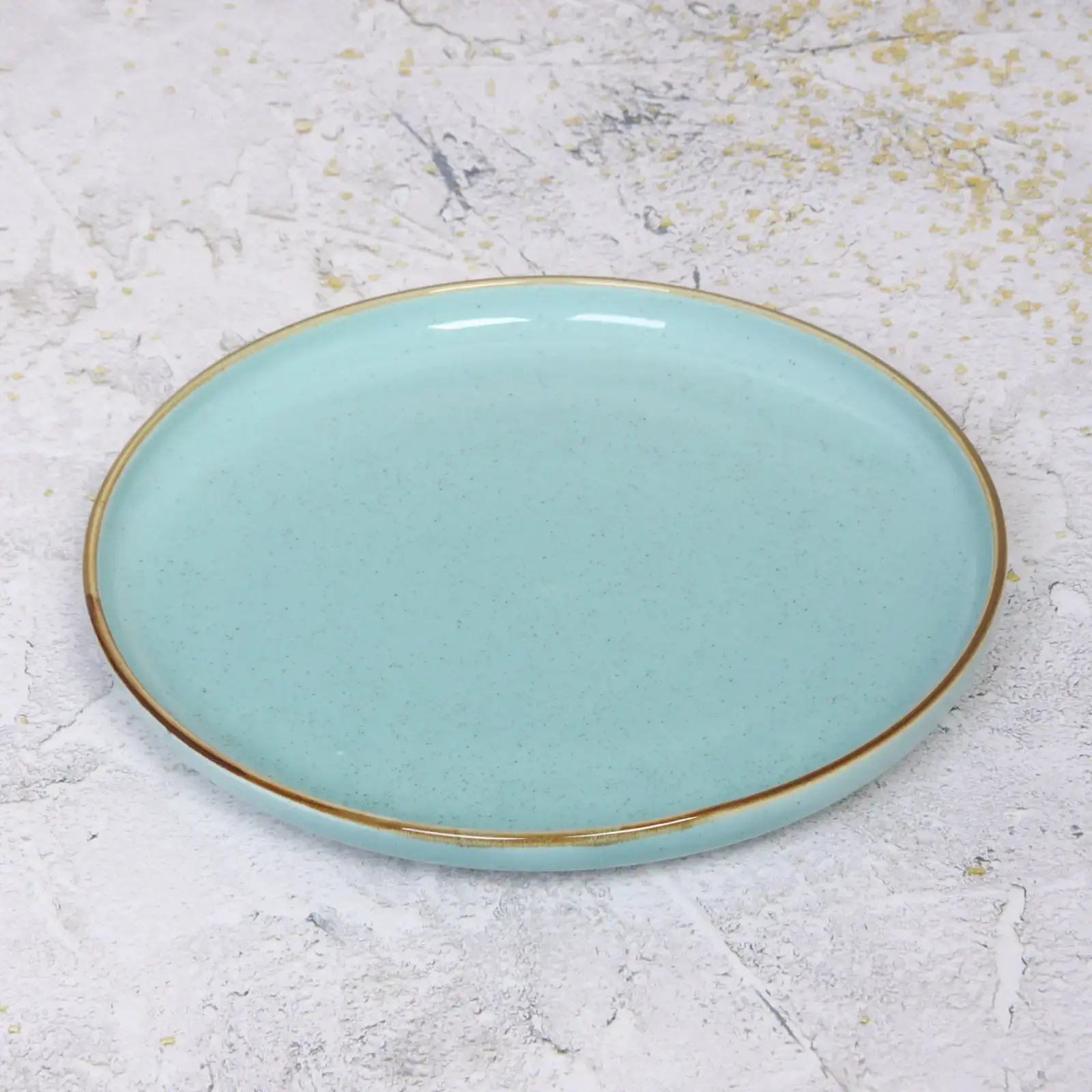 Тарелка керамическая «Tiffany Blue» — это идеальный выбор для тех, кто ценит стиль и качество. Ее светло-голубой цвет с легкими вкраплениями и золотистая отделка по краям придают ей изысканный вид, который украсит любой стол. Эта тарелка не только красива, но и практична, что делает ее незаменимым элементом вашей кухонной посуды.