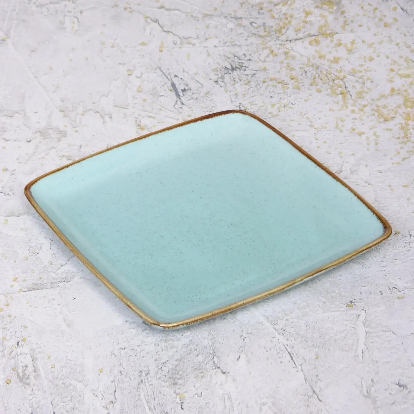Тонкая золотистая окантовка подчеркивает геометрическую форму, а россыпь перламутровых точек создаёт эффект драгоценной посуды. Универсальный цвет «Tiffany Blue» гармонично сочетается с любой сервировкой.