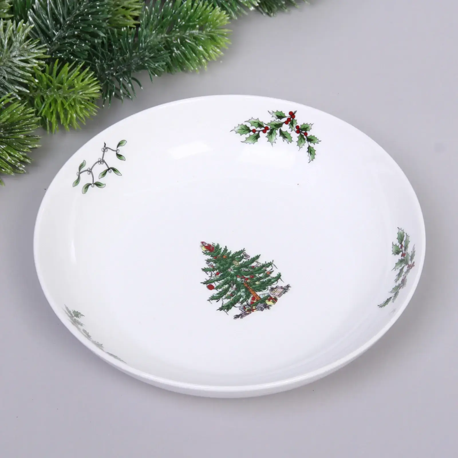 Керамическая тарелка «Ёлочка» создаст волшебную атмосферу новогоднего стола. Яркий декор с хвойными ветвями и алыми ягодами превратит обычный ужин в праздничное торжество.