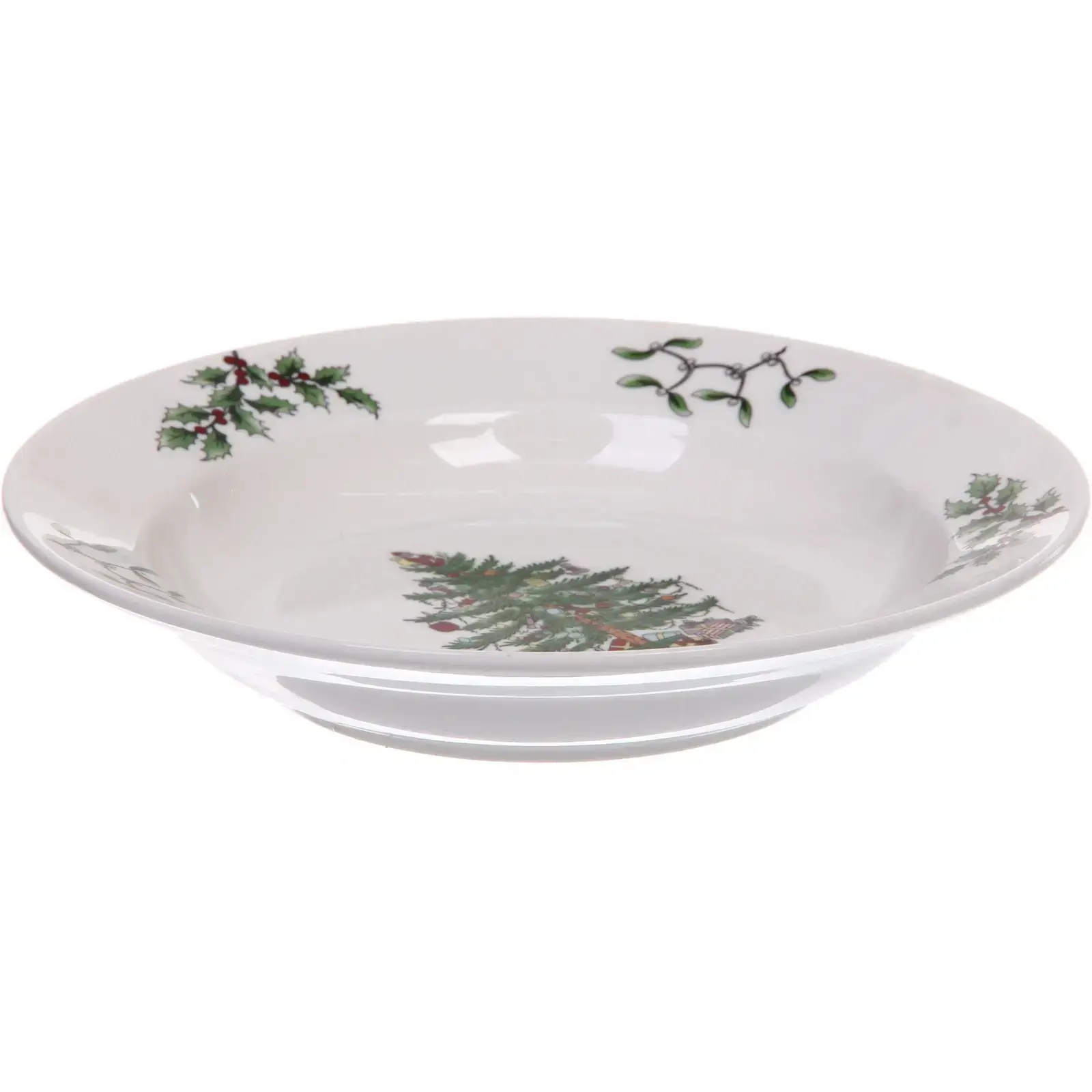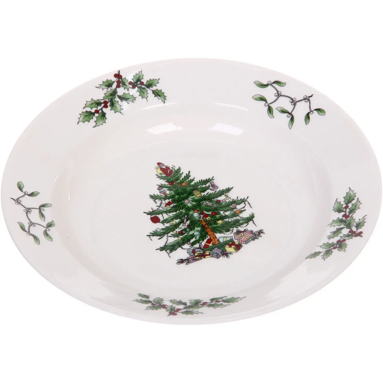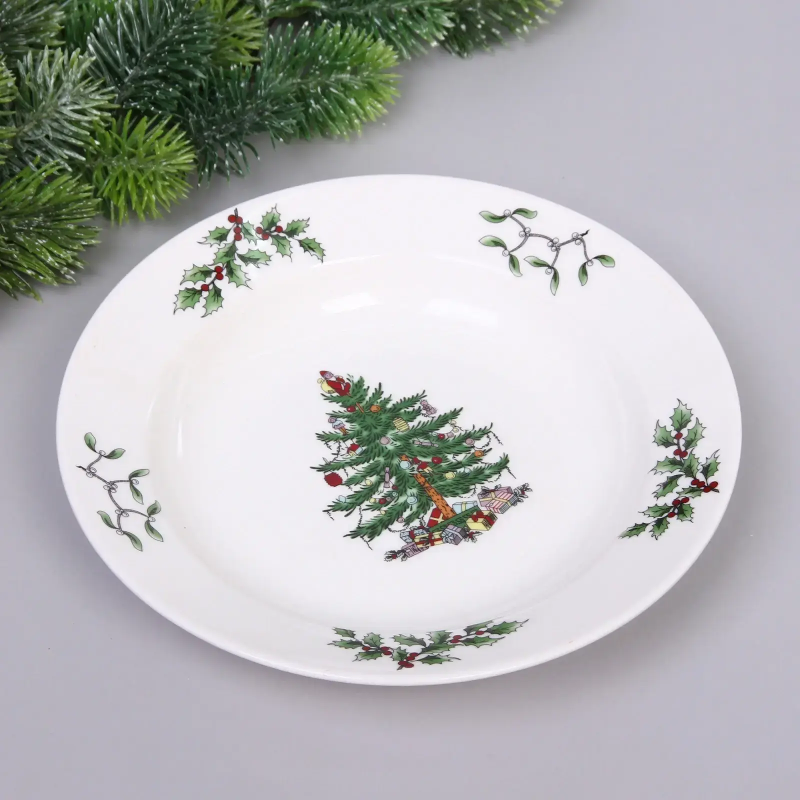 Эта изящная керамическая тарелка предоставляет прекрасный способ украсить праздничный стол и создать уютную рождественскую атмосферу. Благодаря оригинальному рисунку с зелёной ёлкой, украшенной игрушками, гирляндами и подарками, она станет ярким акцентом для ваших семейных торжеств. Тарелка подходит для сервировки горячих и холодных блюд, салатов, десертов и закусок, что делает её практичным и стильным элементом праздничного стола.