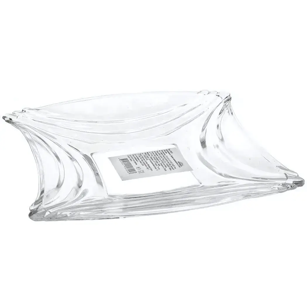 Размер изделия: 17 см по диагонали. Прозрачная структура стекла визуально увеличивает пространство стола, сохраняя акцент на содержимом тарелки. Углублённая центральная часть обеспечивает удобную подачу блюд, а плоские края создают эффектную геометрию.