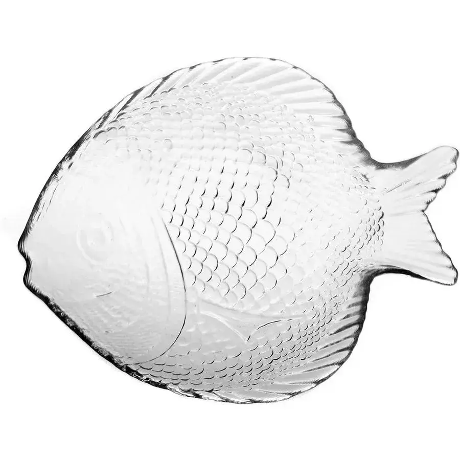 Декоративная тарелка в форме рыбы из прочного стекла станет изюминкой сервировки. Рельефная поверхность, имитирующая чешую, создает эффект 3D-дизайна и приятную тактильность.