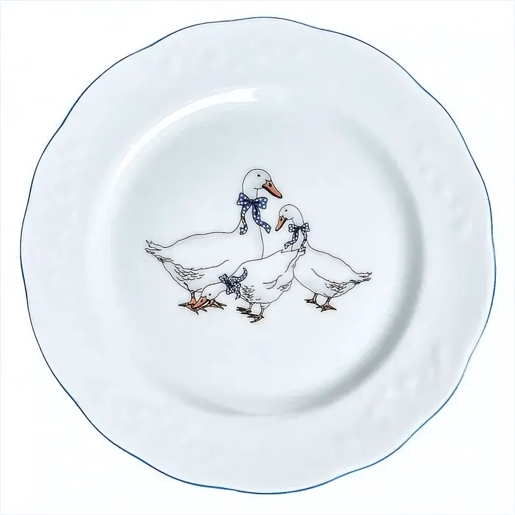 Фарфоровая тарелка диаметром 175 мм из коллекции 'Гуси Надежда' сочетает изящество ручной работы с практичностью повседневного использования. Идеальна для подачи закусок, десертов или создания праздничной сервировки.