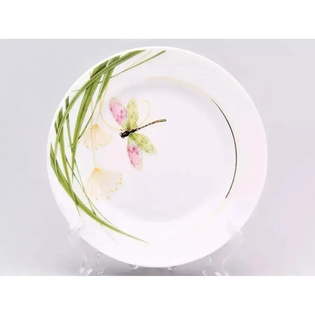 Добавьте нотку элегантности в вашу сервировку с мелкой тарелкой от Добрушского фарфорового завода. Её нежный дизайн с изображением стрекозы станет ярким акцентом на вашем столе.