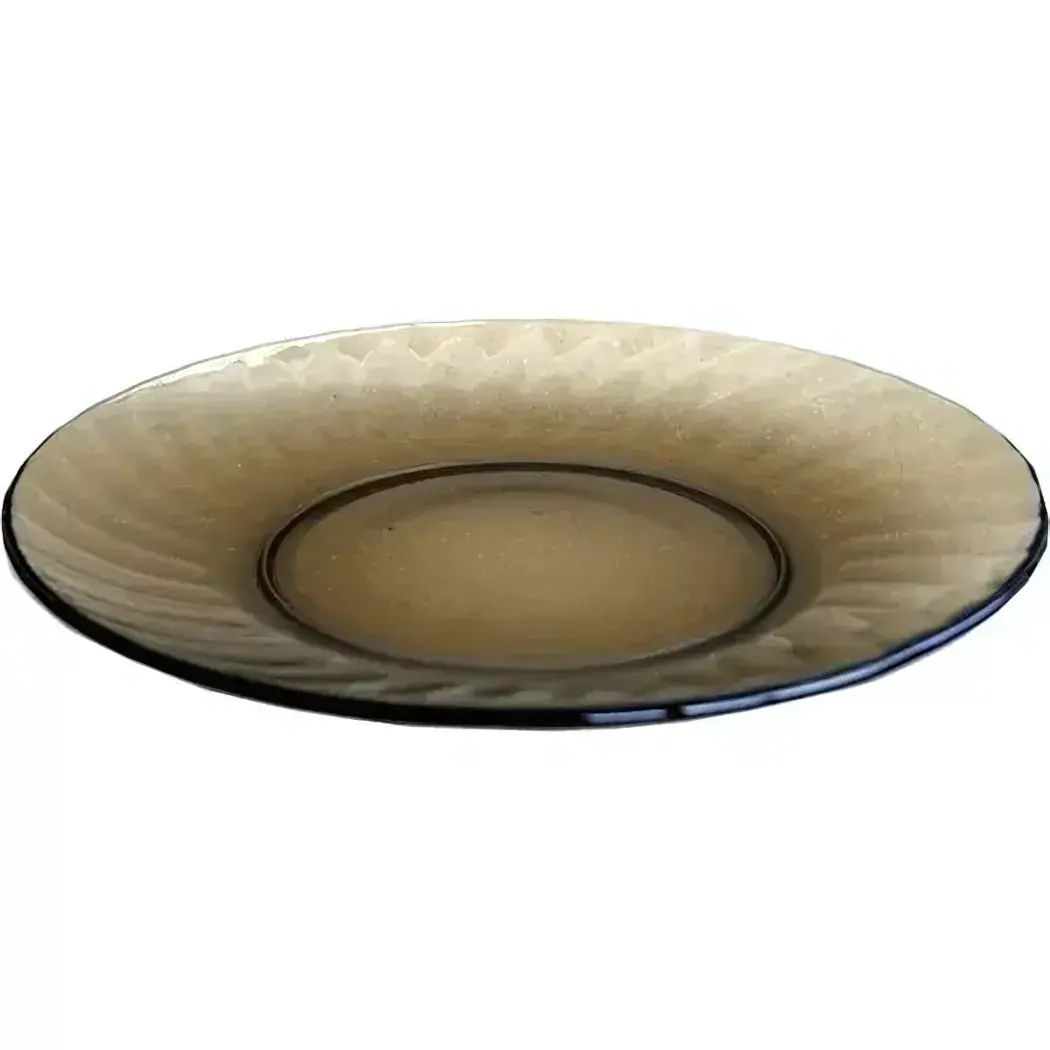 Полупрозрачная структура с дымчатым оттенком создает эффект воздушности, а рифленые края добавляют посуде визуальный объем. Тонкий профиль (высота борта 2 см) обеспечивает комфортное расположение столовых приборов.