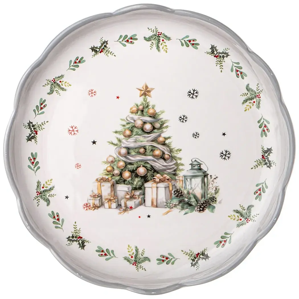 Тарелка обеденная новогодняя "С Новым Годом", 24,5*2,5см, доломитовая керамика