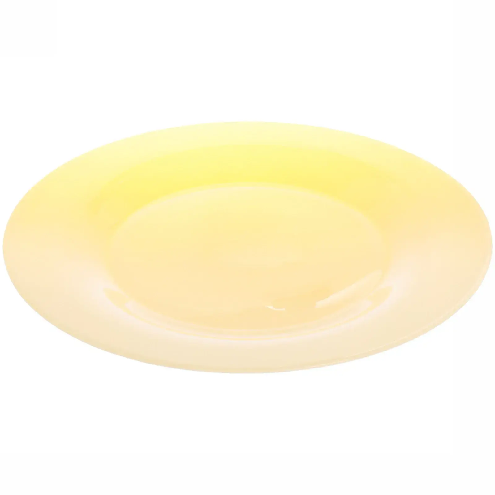 Тарелка изготовлена из экологичного стекла без острых краев. Градиентный переход от насыщенного желтого к нежному оттенку создает эффект ручной росписи. Ровная форма обеспечивает удобное хранение в стандартных кухонных шкафах.
