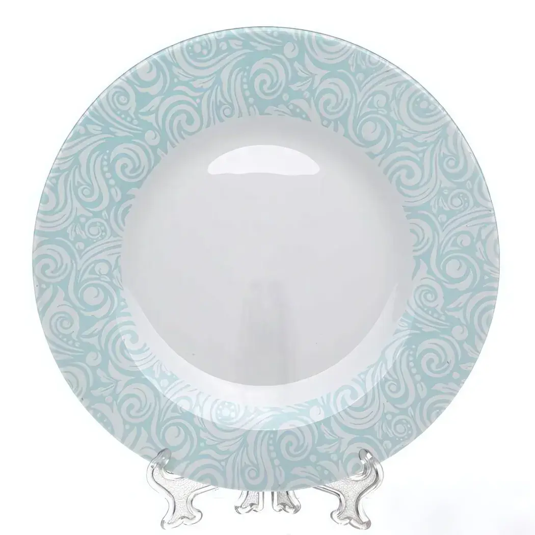 Тарелка обеденная 'Бриз', 26см, стекло, бело-голубая, стильный узор