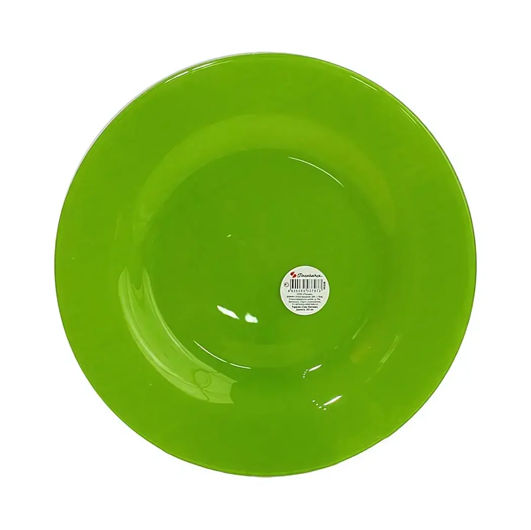 Подавайте блюда с изысканным вкусом! Стеклянная тарелка диаметром 26 см сочетает практичность и элегантный дизайн. Гладкая поверхность насыщенного зеленого оттенка добавит яркий акцент на вашем столе, а прочный материал гарантирует долгий срок службы.