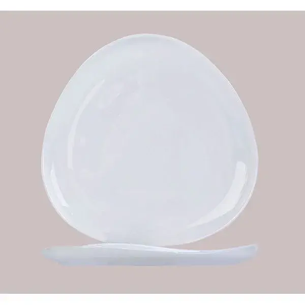 Материал: стекло; диаметр: 20.5 см; форма: асимметричная, округлая с сглаженными краями; цвет: белый. Тарелка не содержит декоративных рисунков и покрытий, что обеспечивает долговечность и безопасность для здоровья.